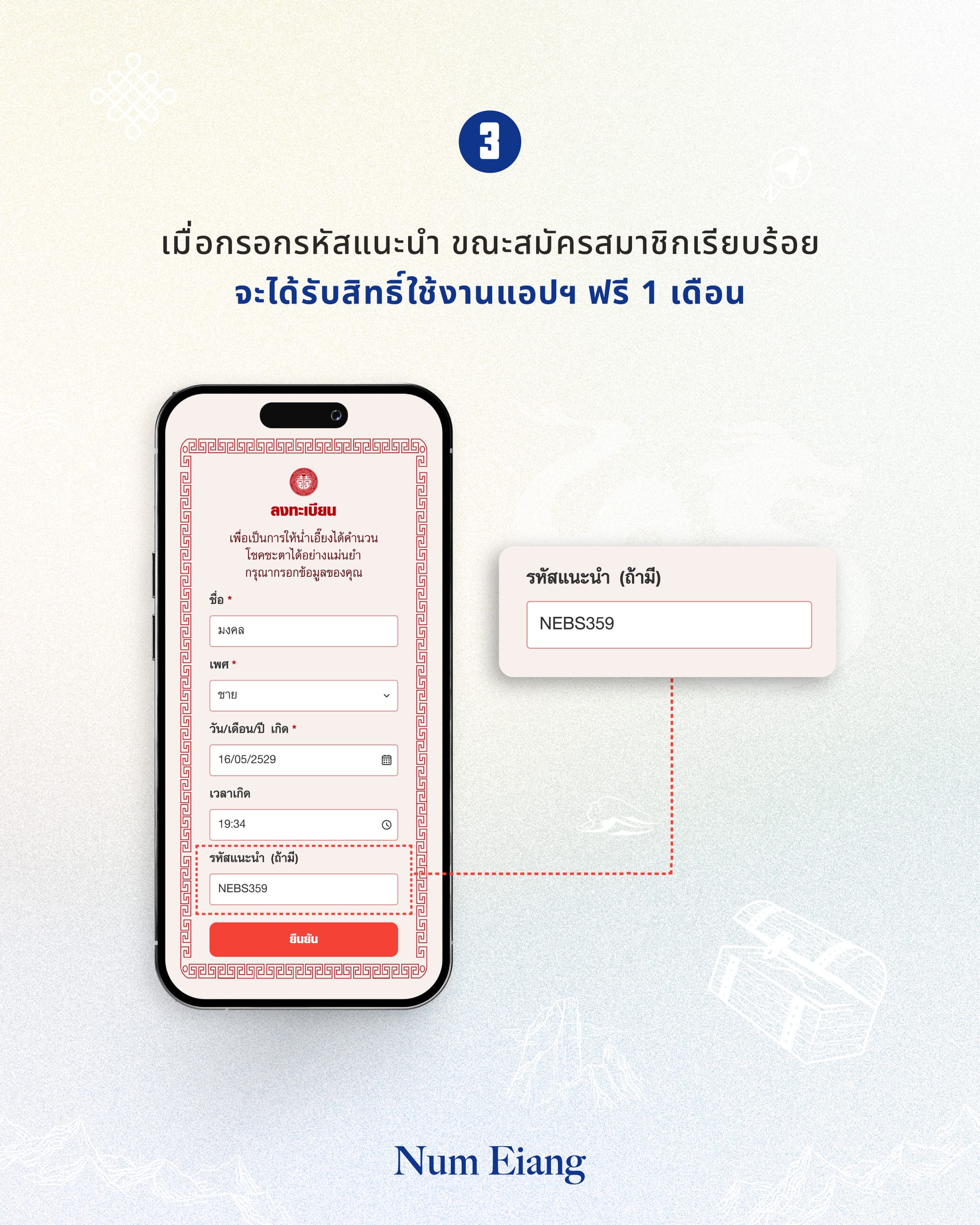 🎉 รับฟรี! ใช้งานแอปฯ ปฏิทินมงคลน่ำเอี๊ยงสูงสุด 1 ปี 🧧 เพียงแนะนำเพื่อนง่าย ๆ แค่ 5 ขั้นตอน!