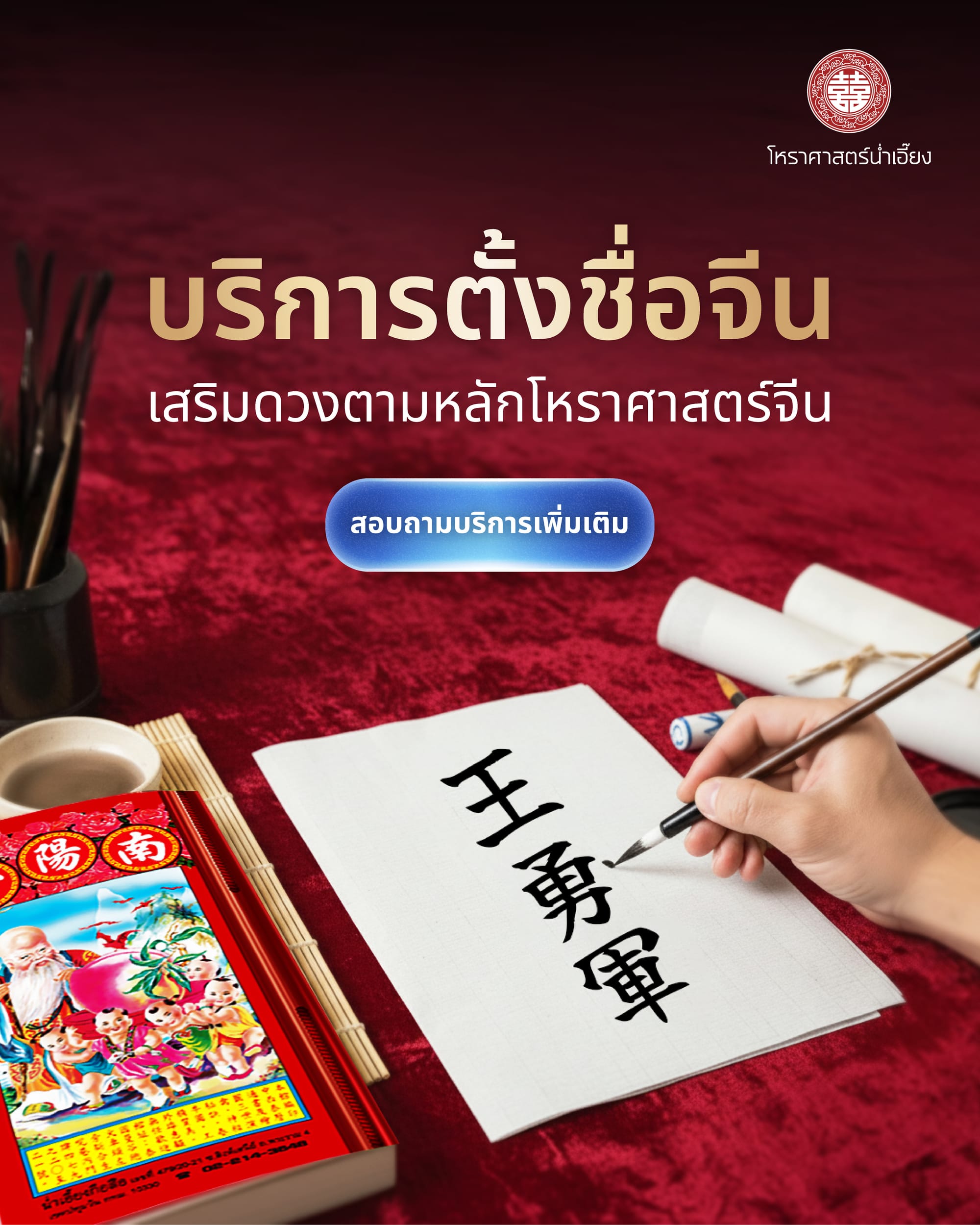 การตั้งชื่อจีนจึงมิใช่เพียงการสร้างชื่อใหม่ แต่คือการสร้างรากฐานของชีวิต เป็นการเลือกถ้อยคำที่สะท้อนพลังบุญและพลังดวงชะตาของบุคคลนั้นโดยตรง เพื่อให้ก้าวเดินไปบนเส้นทางที่มั่นใจ แข็งแรง และสง่างามตลอดไป