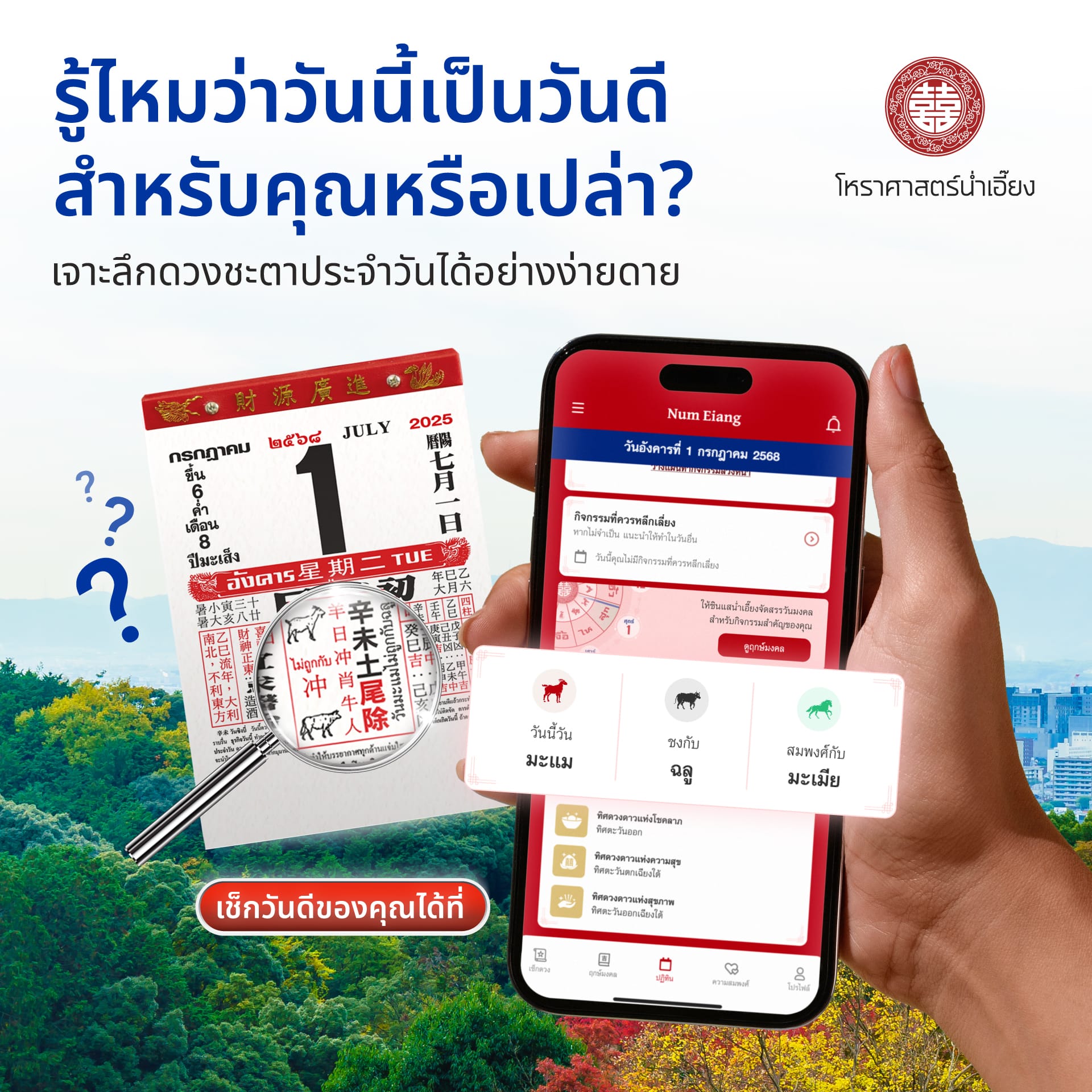 อยากรู้ไหมว่าวันนี้เป็นวันดีสำหรับคุณหรือเปล่า? 🗓️ แอปพลิเคชันน่ำเอี๊ยงมีฟีเจอร์ที่จะช่วยให้คุณตรวจสอบดวงชะตาประจำวันได้อย่างง่ายดาย โดยแสดงข้อมูลสำคัญในมิติที่หลากหลายเกี่ยวกับวันนั้นๆ เพื่อให้คุณเตรียมพร้อมรับมือ