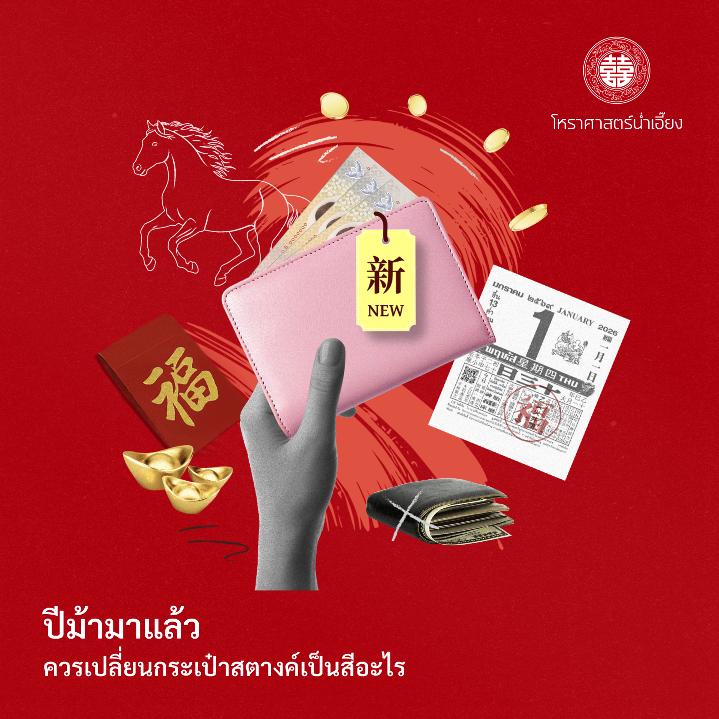 เช็กพลังงานปีมะเมียธาตุไฟ 2026 จุดชนวนความมั่งคั่งด้วยกระเป๋าสตางค์สีมงคล