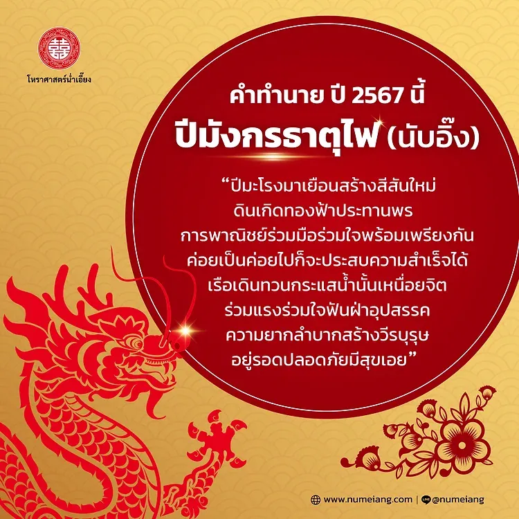 คำทำนาย ปี 2567 นี้ ปีมังกรธาตุไฟ (นับอิ๊ง)