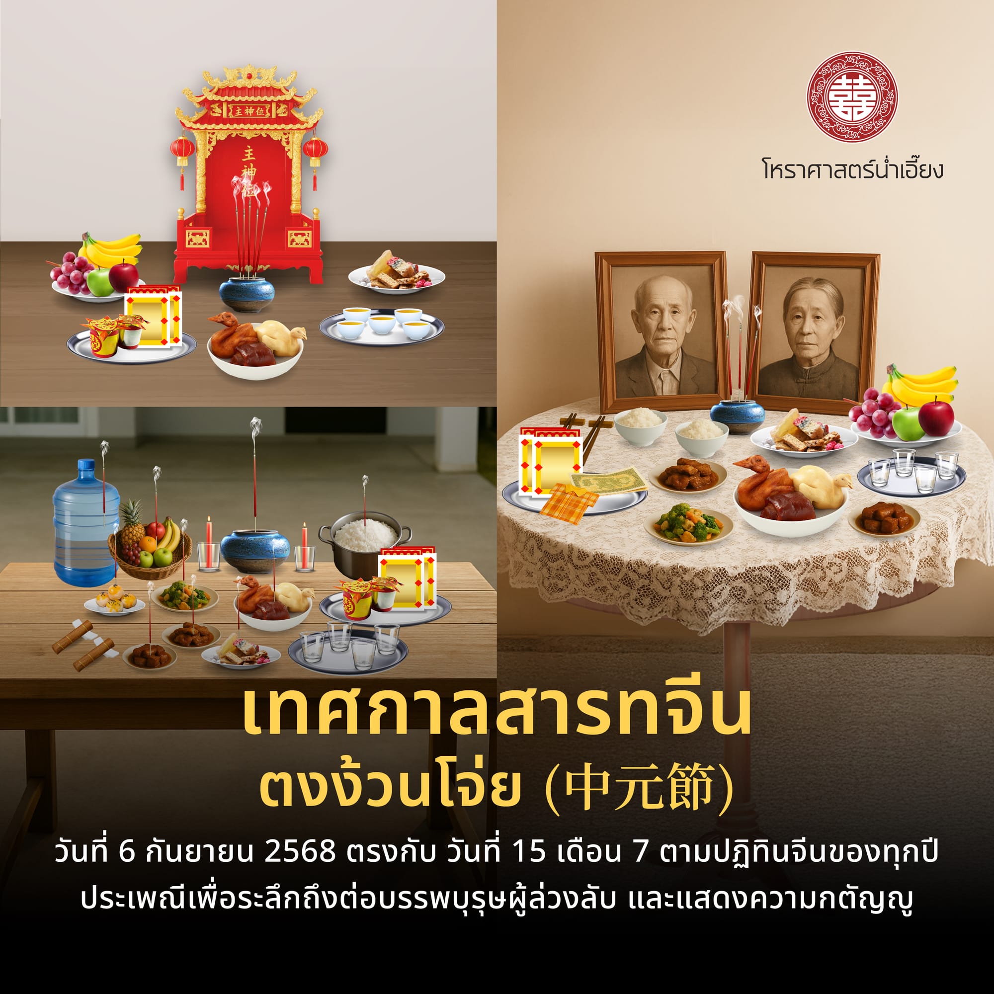 เทศกาลสารทจีน หรือตงง้วนโจ่ย (中元節) มาจากความเชื่อว่าวันที่ 15 เดือน 7 ตามปฏิทินจีนของทุกปี (ปีนี้ตรงกับวันที่ 6 กันยายน 2568) เป็นวันที่ประตูนรกเปิดให้วิญญาณขึ้นมารับส่วนบุญบนโลกมนุษย์ จึงมีการไหว้เพื่อแสดงความกตัญญูต่อบรรพบุรุษ และทำทานแก่วิญญาณไร้ญาติ