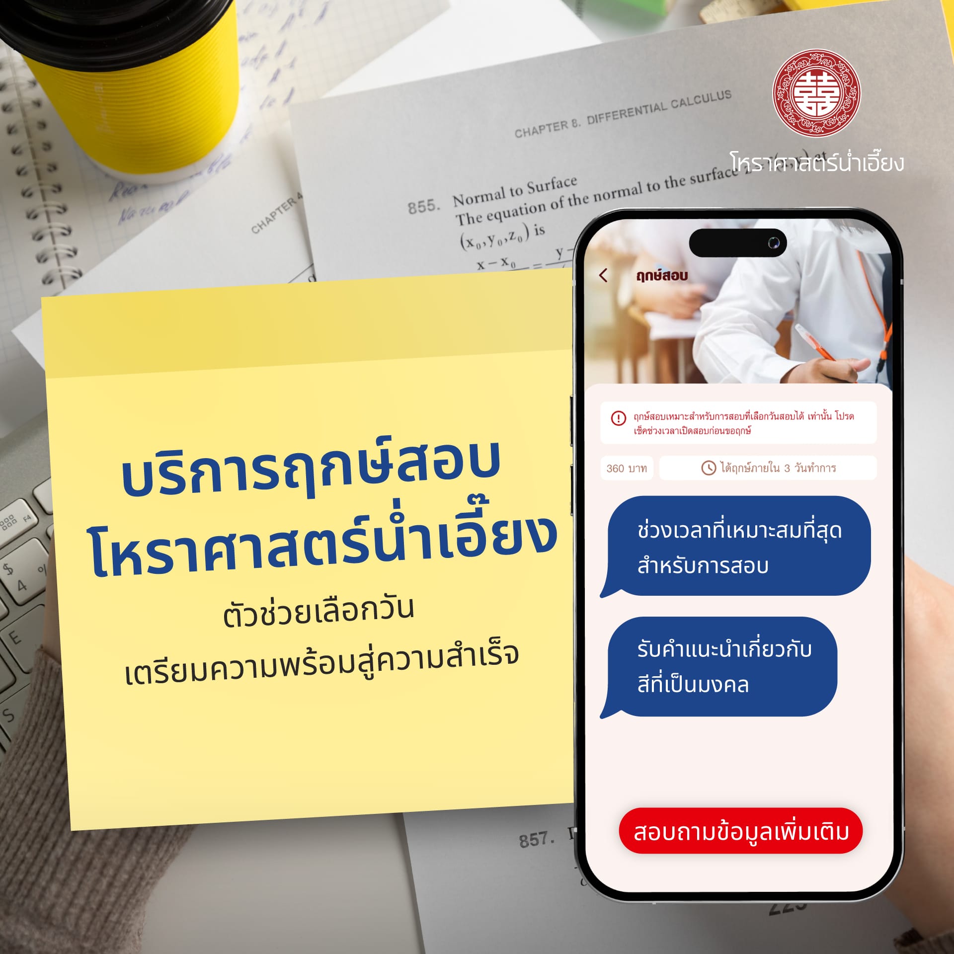 การสอบคือช่วงเวลาสำคัญที่ต้องการความพร้อมทั้งกายและใจ เพื่อให้คุณก้าวสู่สนามสอบด้วยความมั่นใจสูงสุด น่ำเอี๊ยงขอเสนอ บริการฤกษ์สอบ ที่ถูกออกแบบมาเพื่อช่วยเสริมพลังบวกและแนวทางที่ดีที่สุดสำหรับคุณ