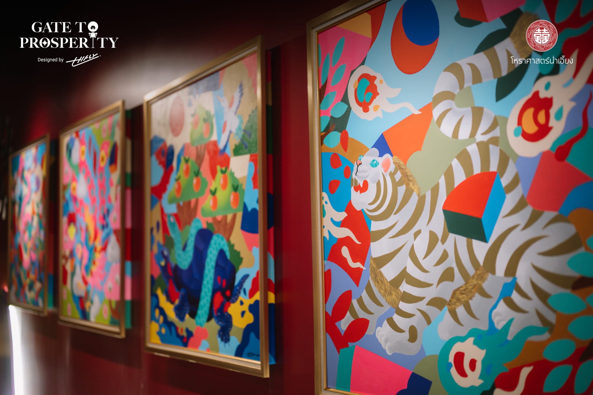 จัดแสดง ภาพวาดสัตว์เทพทั้งสี่ ที่ออกแบบอย่างวิจิตรและแฝงความหมายอันลึกซึ้งเกี่ยวกับพลังมงคล โดยจะมีการ ประมูลภาพวาดพิเศษ ขนาด 1x1 เมตร ในวันที่ 1 กุมภาพันธ์ 2025 รายได้ส่วนหนึ่งจากการประมูลจะนำไปสนับสนุนกิจกรรมสาธารณประโยชน์