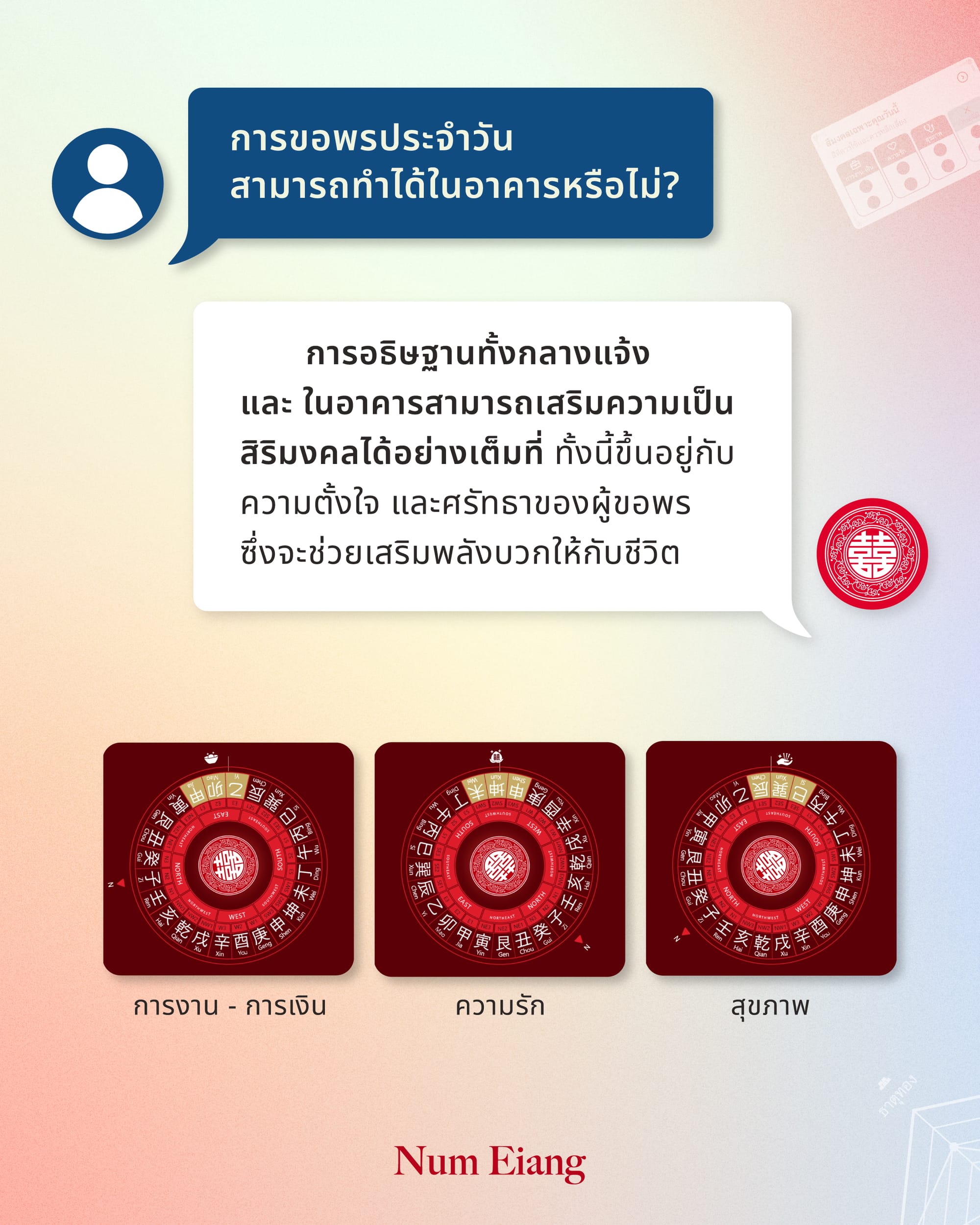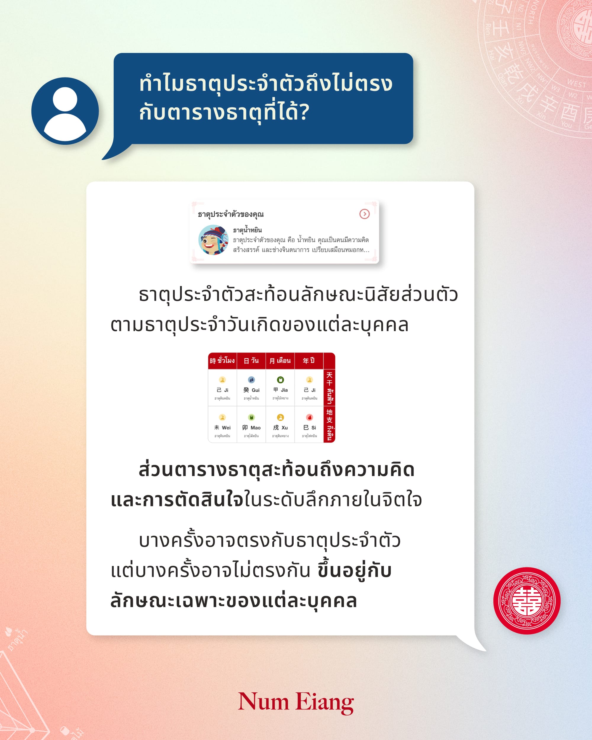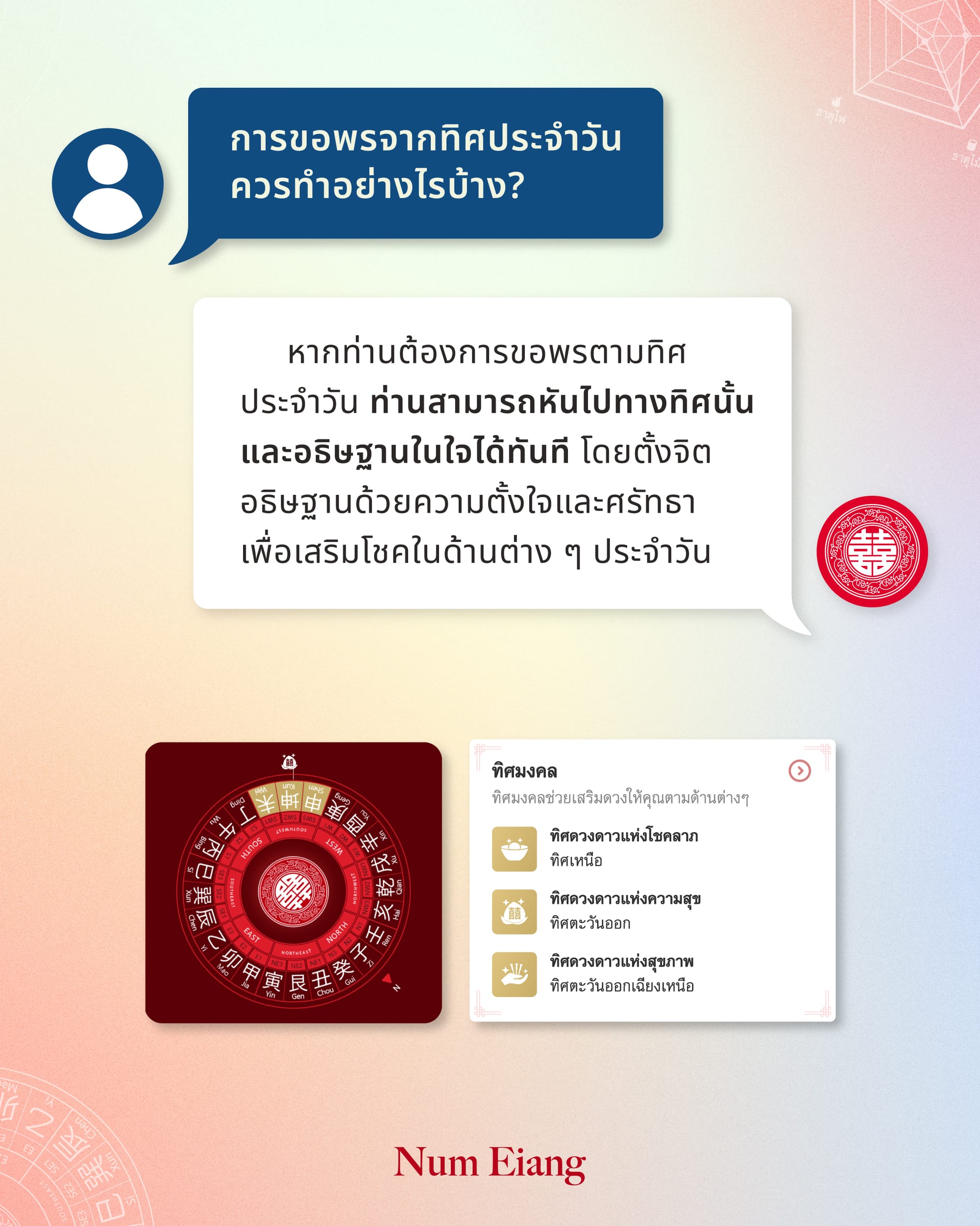 หลายท่านอาจมีข้อสงสัยเกี่ยวกับการเลือกใช้สีมงคล การขอพรตามทิศประจำวัน หรือแม้แต่เรื่องของธาตุประจำตัว ซึ่งล้วนเป็นศาสตร์ที่มีรากฐานจากโหราศาสตร์จีนโบราณ โดยเฉพาะหลักน่ำเอี๊ยง (หยิน-หยาง และธาตุทั้งห้า) ที่กล่าวถึงความสมดุลของพลังงานในชีวิตประจำวัน