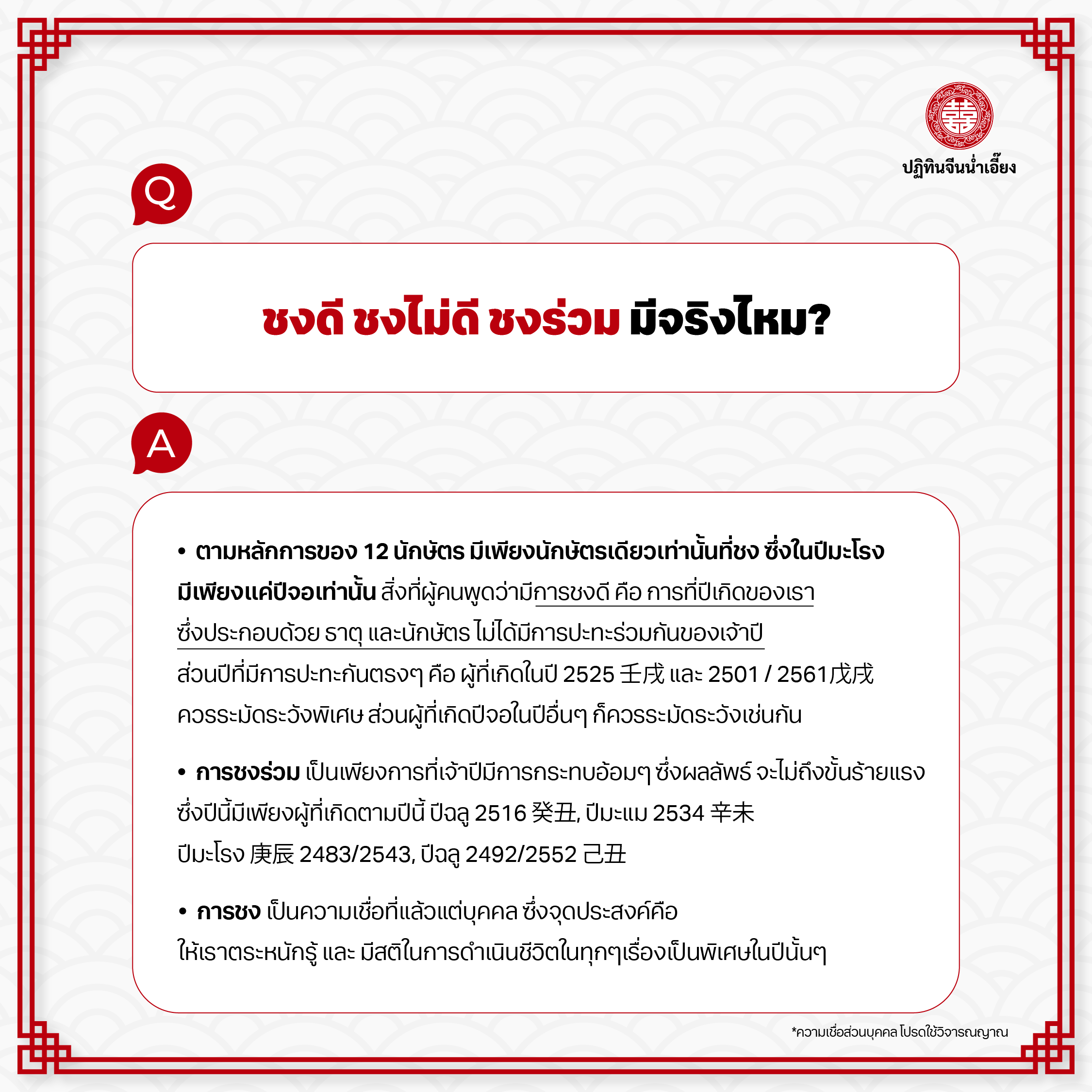 ตามหลักการของ 12 นักษัตร มีเพียงนักษัตรเดียวเท่านั้นที่ชง ซึ่งในปีมะโรงมีเพียงแค่ปีจอเท่านั้น สิ่งที่ผู้คนพูดว่ามี