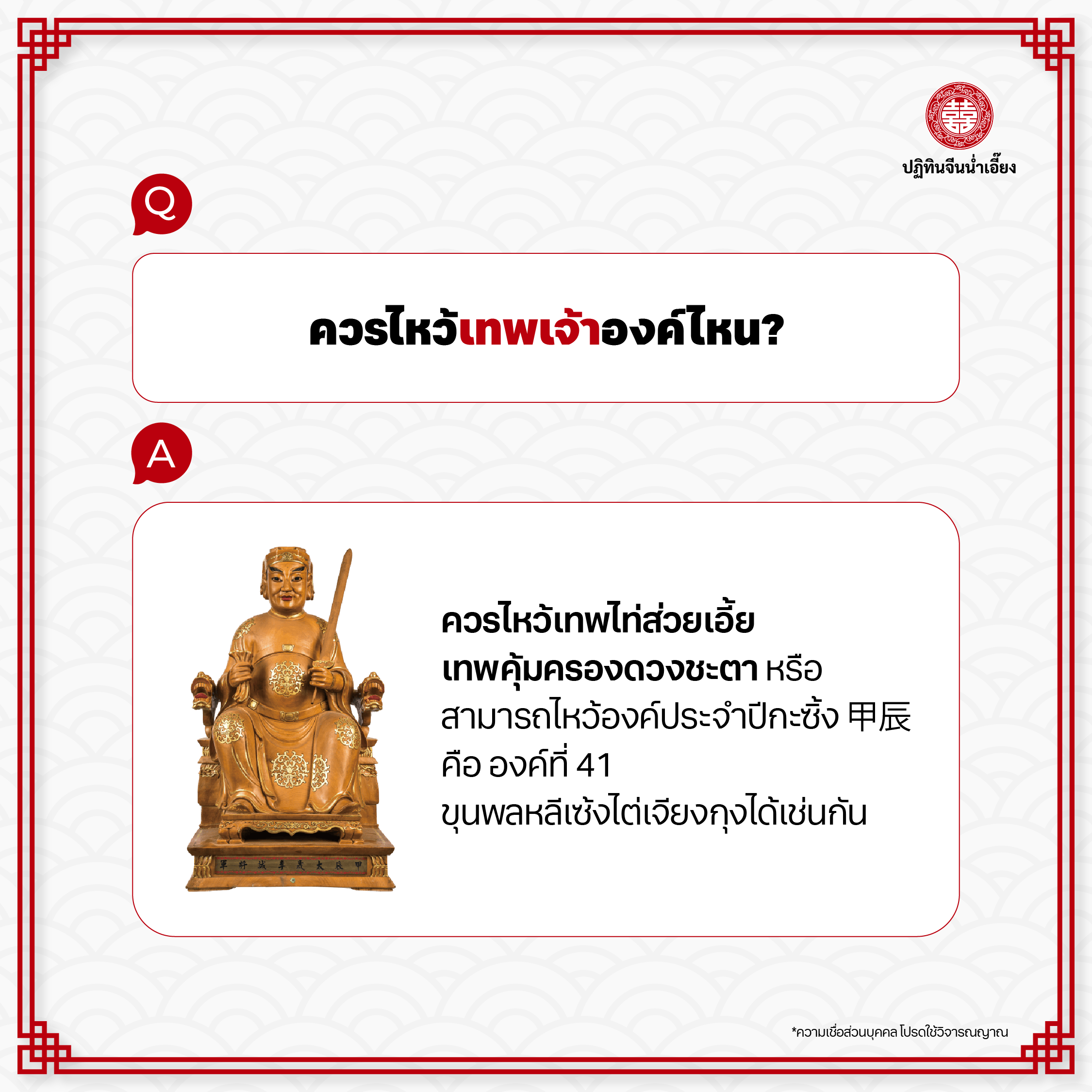 เทพผู้คุ้มครองดวงชะตาของผู้คนทั้งทิศเหนือและทิศใต้ ซึ่งแต่ละปีจะมีการวนกันมาทำหน้าที่ของเทพไ่ท่ส่วยเอี้ยที่มีทั้งหมด 60 องค์ ซึ่งในปีนี้เป็นการทำหน้าที่ เทพไท่ส่วยเอี้ยองค์ที่ 41 ขุนพลหลีเซ้งไต่เจียงกุง (甲辰太歲李誠大將軍) ประจำปีกะซิ้ง โดยหลักๆ วัดไหนที่มีองค์เทพไท่ส่วยเอี้ย หรือ องค์ไท่ส่วยเอี้ยประจำปี ซึ่งถ้ามีเทพพระเจ้าประจำปีนั้นๆก็สามารถขอพรจากท่านได้เลย