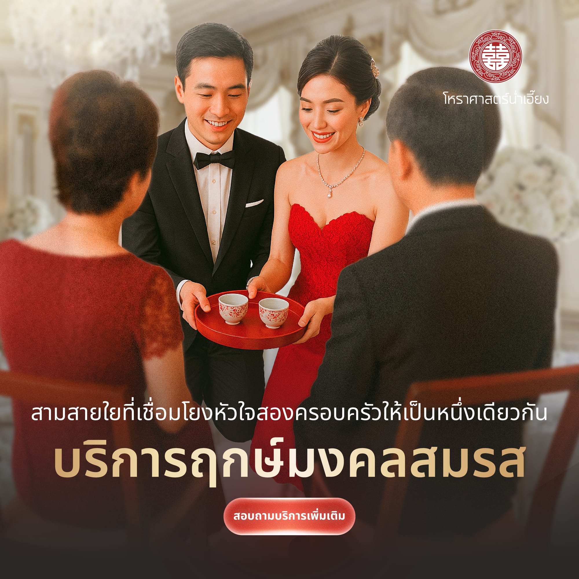 ฤกษ์แต่งงานที่ถูกต้องจะทำให้ชีวิตคู่เริ่มต้นด้วยความมั่นใจ ความรักที่ยืนยาว และความสัมพันธ์ที่ราบรื่นในครอบครัว ความสามัคคีของพ่อแม่ทั้งสองฝ่ายจะกลายเป็นรากฐานที่แข็งแรงให้คู่บ่าวสาวเดินหน้าได้อย่างมั่นคง อีกทั้งยังส่งผลถึงความเจริญรุ่งเรืองของลูกหลานในอนาคต