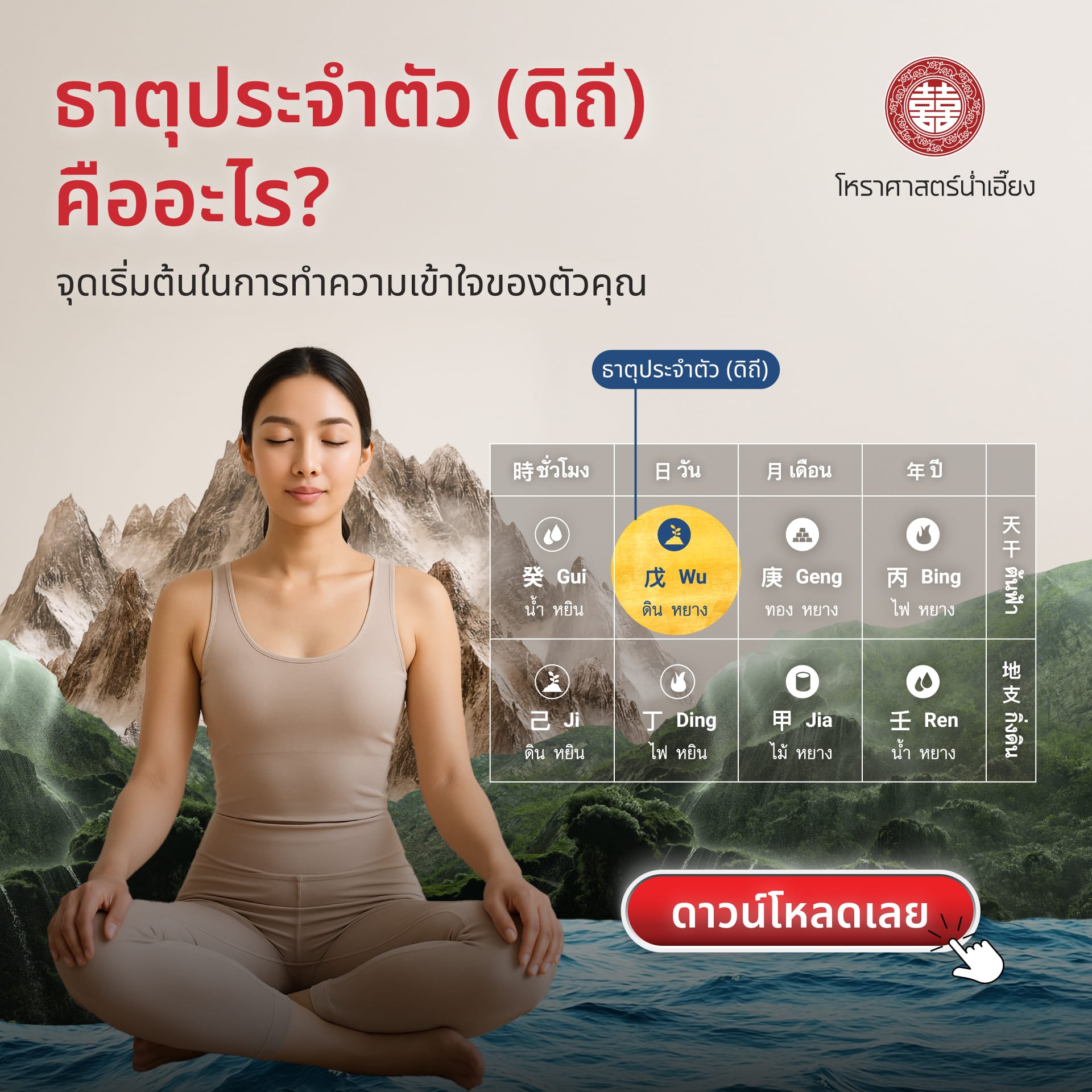 ในศาสตร์โหราศาสตร์จีน การทำความเข้าใจ "ธาตุประจำตัว" ของแต่ละบุคคลเป็นสิ่งสำคัญอย่างยิ่ง ธาตุประจำตัวนี้เปรียบเสมือนแก่นแท้ที่ซ่อนอยู่ในตัวเรา ซึ่งสามารถบอกถึงบุคลิกภาพและแนวโน้มพฤติกรรมโดยรวมที่เราแสดงออกให้ผู้อื่นเห็นได้