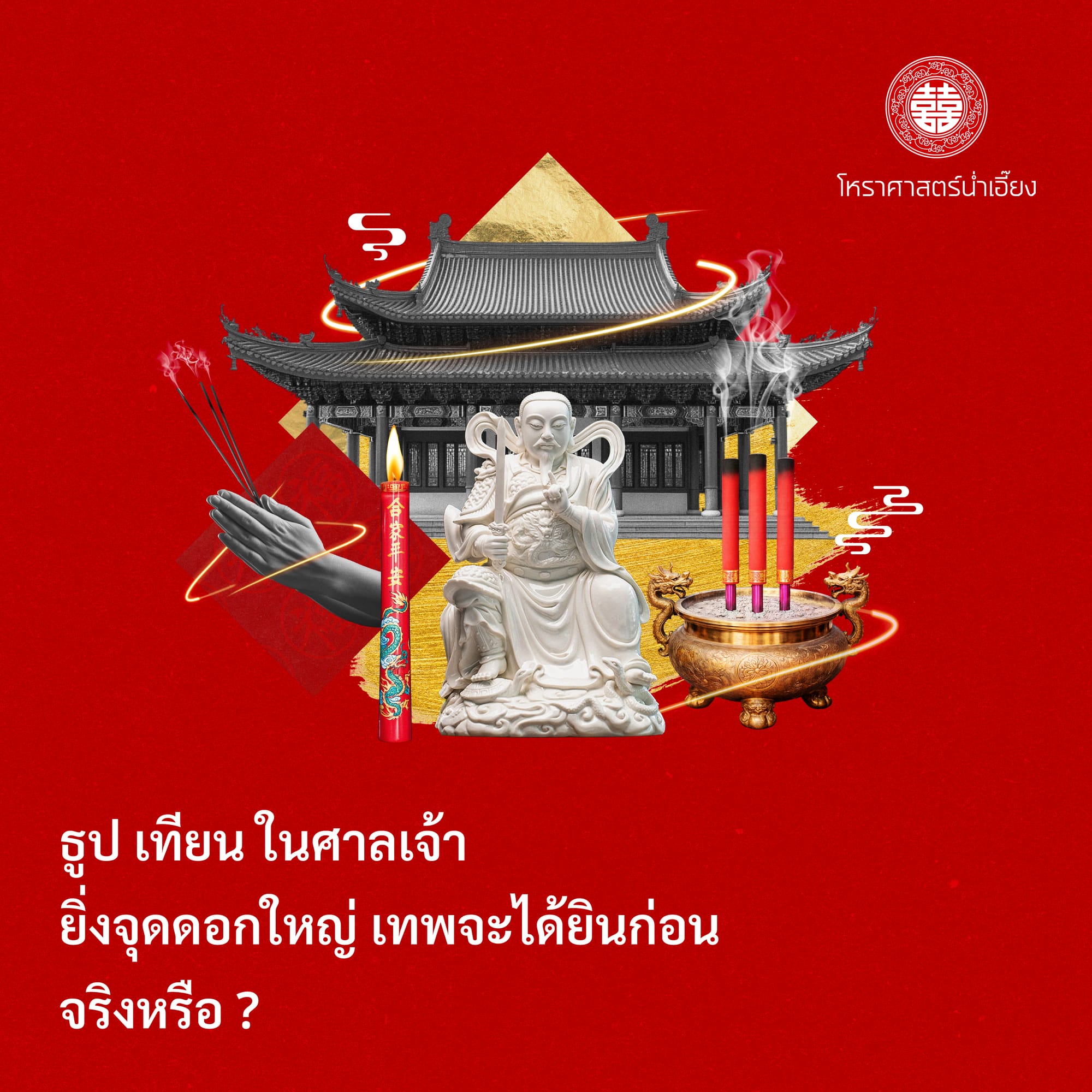เวลาเดินเข้าไปในศาลเจ้าจีน เรามักเห็นภาพธูปดอกใหญ่ เทียนสูงสีแดง หรือเครื่องบูชาขนาดอลังการวางเรียงอยู่ด้านหน้าองค์เทพ หลายคนอาจเคยได้ยินคำบอกเล่าว่า “จุดดอกใหญ่ เทพจะได้ยินก่อน” หรือ “ยิ่งใหญ่ ยิ่งแรง ยิ่งส่งถึงเร็ว”